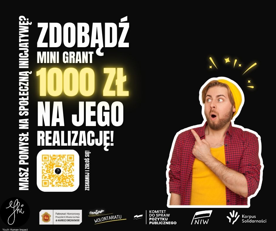 Jeśli działacie w grupie wolontariackiej i macie pomysł na inicjatywę społeczną – to świetna okazja, aby go zrealizować. W ramach konkursu możecie zdobyć mini grant w wysokości 1000 zł na realizację swojego projektu.